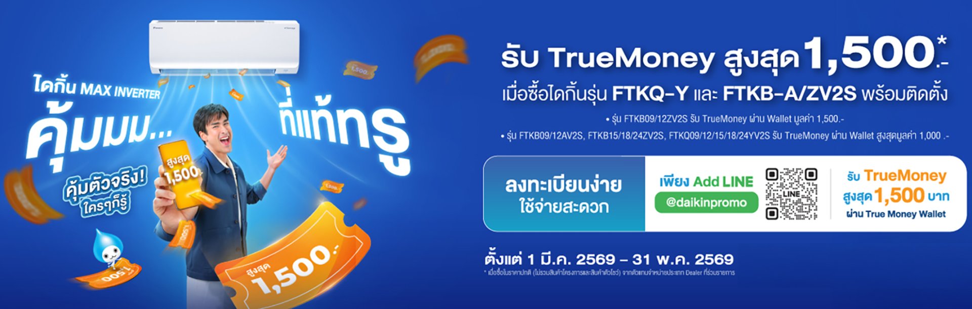 + ลงทะเบียนรับเงินคืน True Money สูงสุด 1,500 บาท สุดคุ้ม
